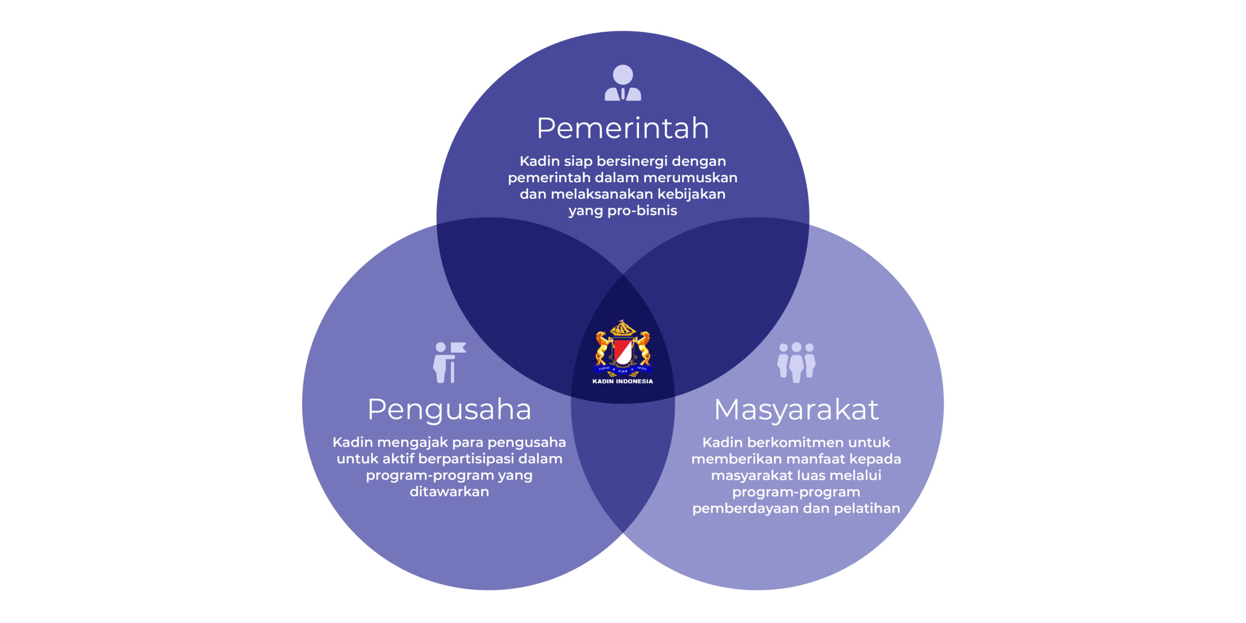 Kadin Indonesia bercita-cita mewujudkan Indonesia Emas 2045, sebuah visi yang mentransformasi Indonesia menjadi negara tangguh, sejahtera, inklusif, dan berkelanjutan